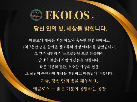 EKOLO™ 은 단순한 브랜드가 아닙니다. 당신의 삶에 기분 좋은 전환을 더하고, 일상에 따뜻한 여백을 만들기 위한 정성 어린 약속입니다. 하나하나의 순간이 더 편안하고, 더 사랑스럽게 다가올 수 있도록, EKOLO™ 은 오늘도 당신 곁에서 잔잔히 공명합니다.